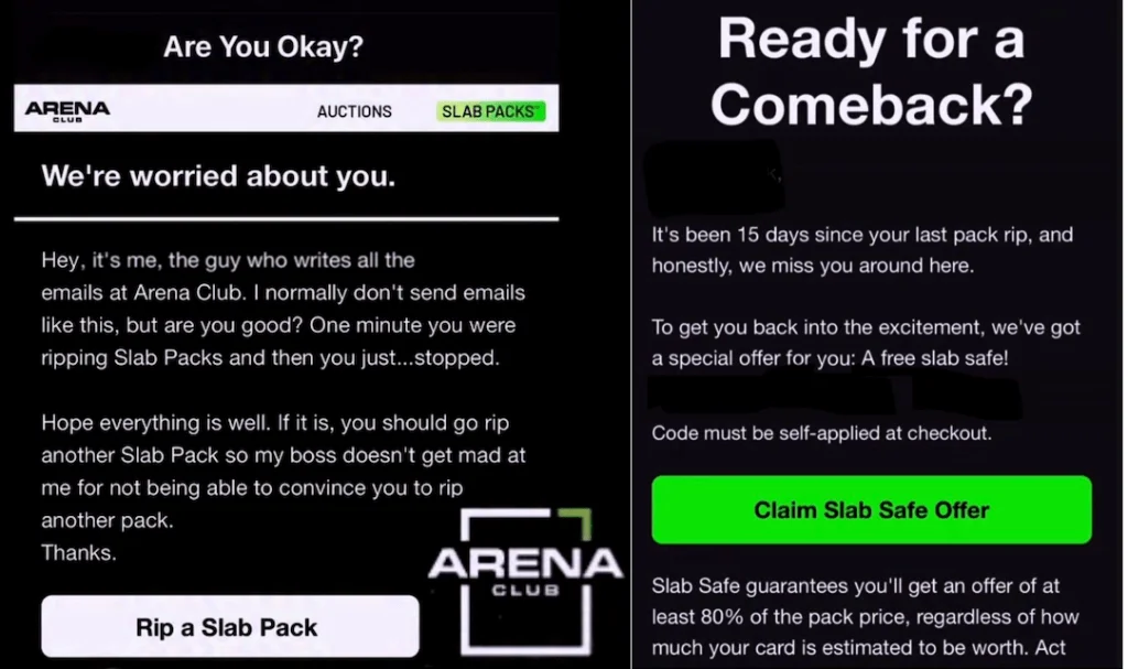 Hobby marketing doesn’t hint at gambling anymore—it speaks its language fluently. The latest example comes from Arena Club, whose recent emails read like something straight
