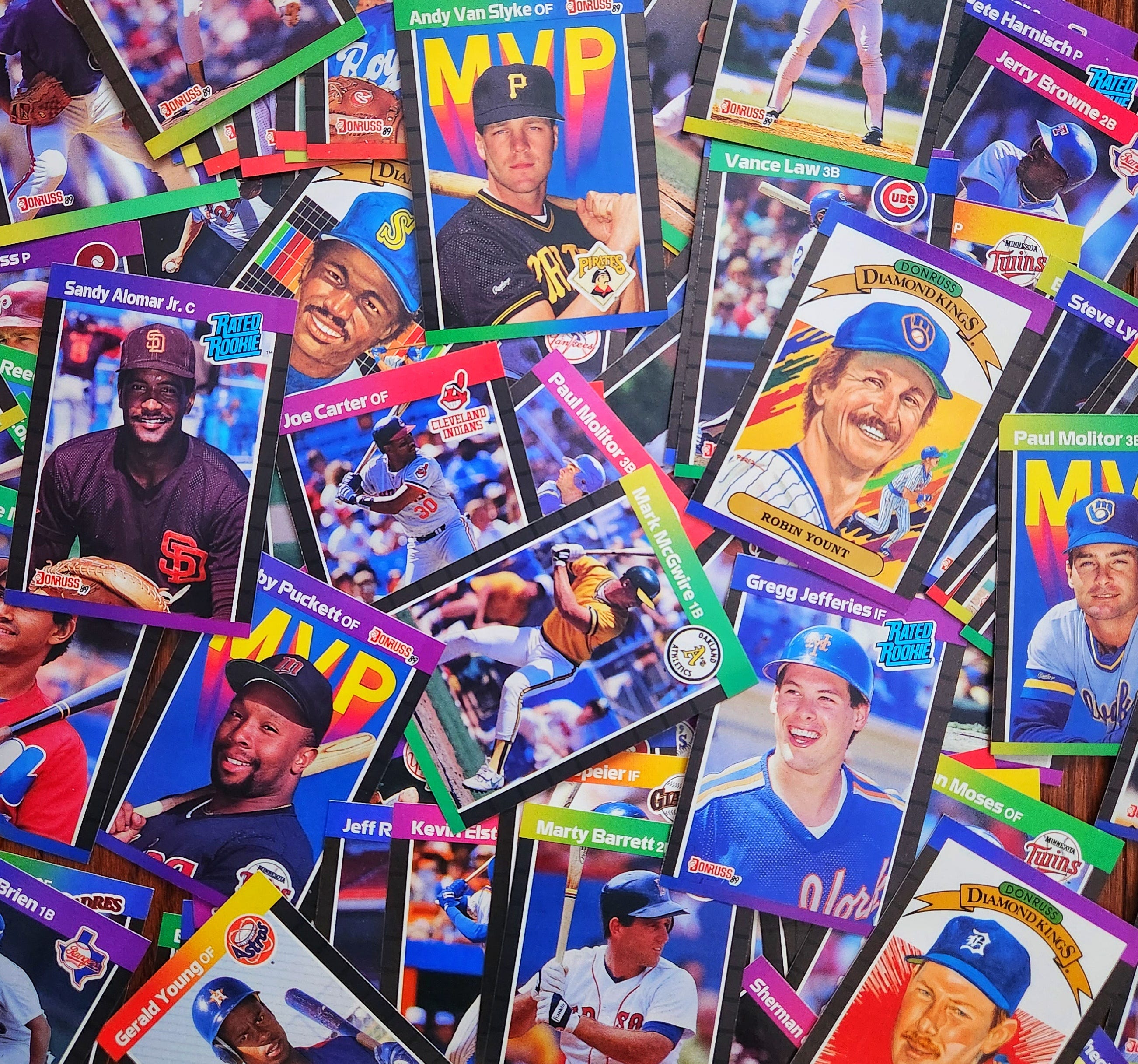 If you are of a certain age, you will likely agree that collecting “the rainbow” once meant collecting 1989 Donruss baseball cards. Every package you opened was a colourful tribute to a magical time in baseball. You’d flip through a pack and find names like Dave Stieb, Jose Canseco, Barry Bonds, Don Mattingly, Cal Ripken Jr., Andrew Dawson, Ozzie Smith, Mark McGwire, Fred McGriff, and maybe even a couple of rookies named Ken Griffey Jr., Gary Sheffield, or Randy Johnson, among others. What a time to be alive!